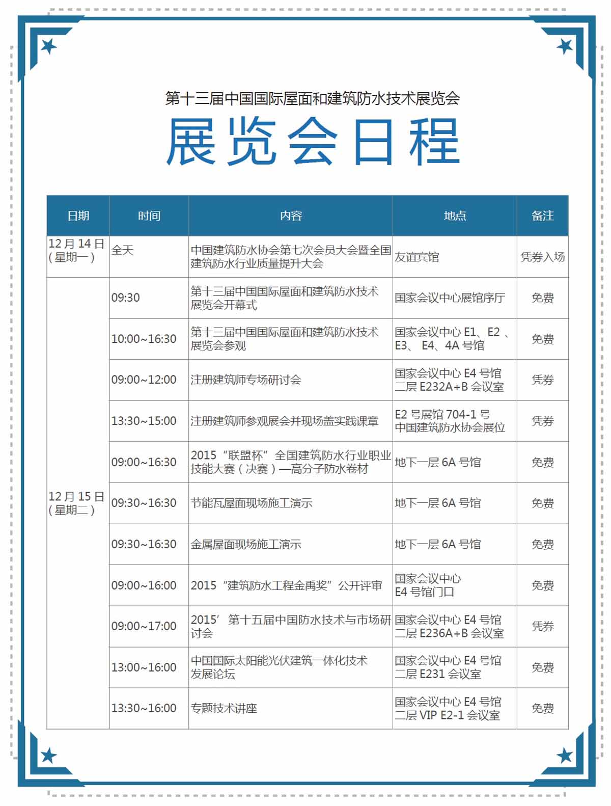 展商:名企云集——250多家國內外屋面和建筑防水領域一流廠商(涉及屋面系統、建筑防水材料以及生產裝備、施工機具等上下游供應商),1500個展位,1000多種產品